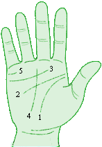 | (2)智慧线 | 又叫做‘人纹’。从大拇指和食指中间出发,往‘月丘’延伸的线,影响的是个性、思路方面。 | |